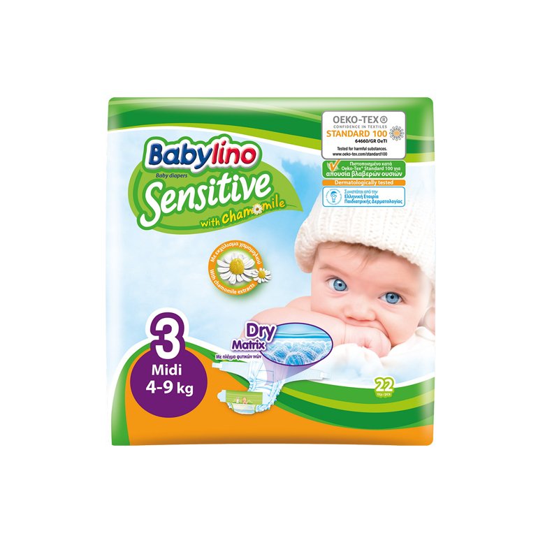 Babylino Sensitive Midi Νο3 (4-9kg) πάνες μωρού 22 τεμάχια