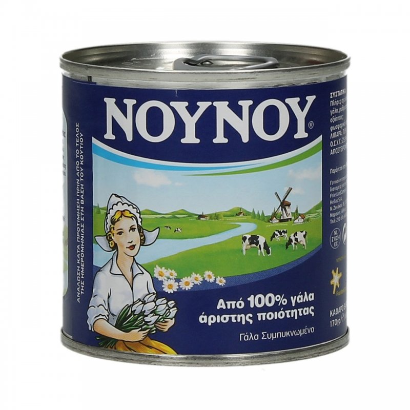 Το συμπυκνωμένο γάλα ΝΟΥΝΟΥ αποτελεί εγγύηση ποιότητας και θρεπτικής αξίας στη διατροφή της ελληνικής οικογένειας. Φτιαγμένο με πολλή φροντίδα, έχει υπέροχη γεύση και περιέχει όλα τα θρεπτικά συστατικά του γάλακτος σε ένα ποτήρι. Εδώ, σε συσκευασία των 170gr.